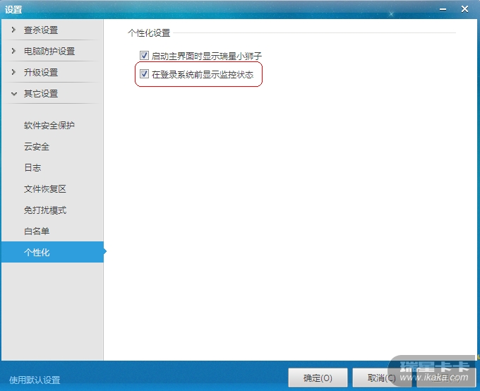 瑞星杀毒软件在登录系统前没有显示监控状态