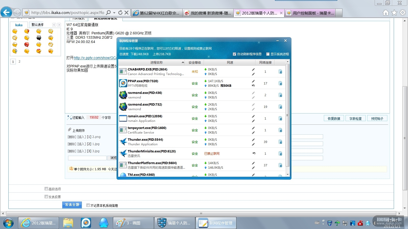 防火墙的限速功能只能限制TCP连接,无法限制UDP连接,PPAP这种视频客户端工具一部分连接是UDP协议,因此无法限制。