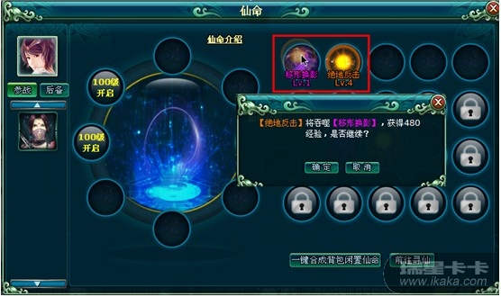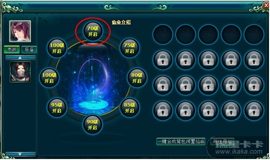 玩家达到70级可以开启一个仙命系统装备格,此后每升5级,开启一个,达到100级可以开启两个,总共可以开启8个仙命装备格。