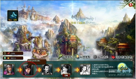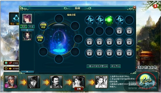 玩家可进入寻仙场景寻访仙人获得仙命。寻仙场景中有5位仙人,从左至右分别为1—5级。仙人的级别越高,获取高品质仙命的几率越大。