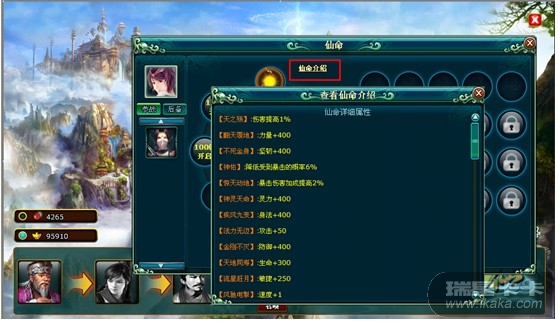 玩家点击界面上的“仙命”可以打开玩家的个人仙命界面。