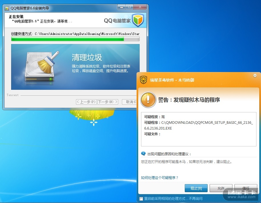 安装电脑管家时,瑞星报电脑管家疑似为木马