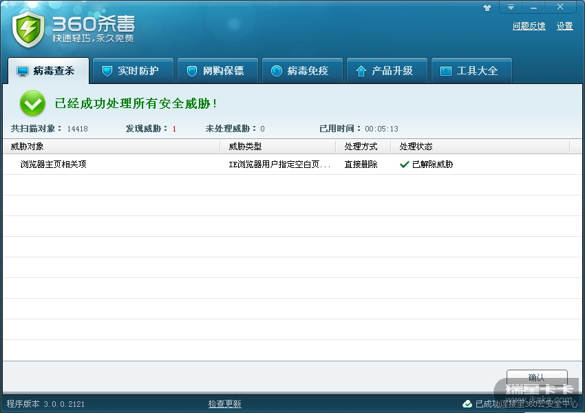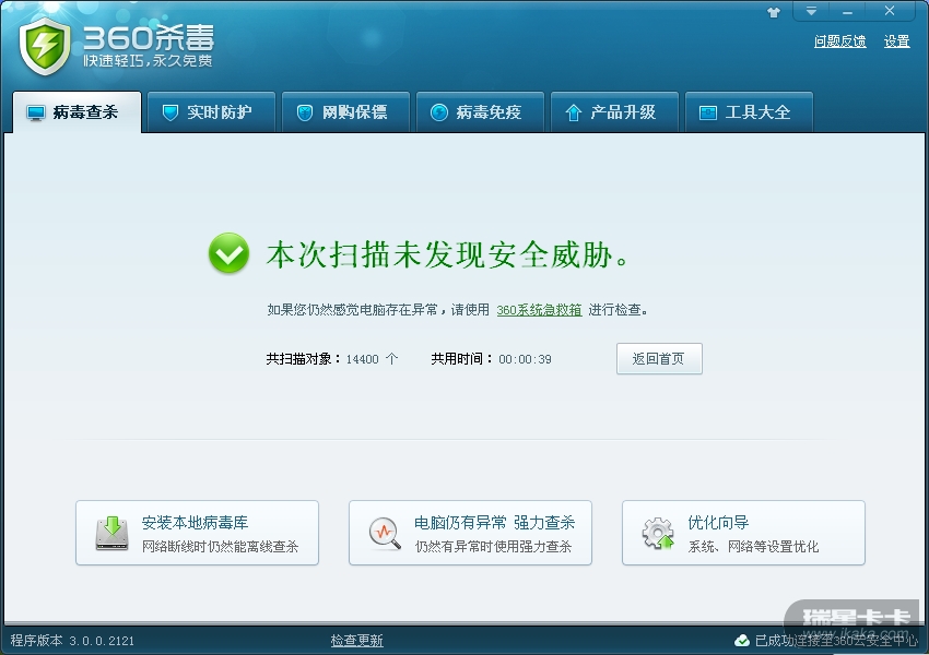 | | 瑞星杀毒软件2012 | 360杀毒3.0Air |