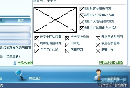 lz使用的是瑞星网络版产品?软件版本是多少?发个:“瑞星全功能安全软件”的(安检)这个界面里显示没有安装瑞星卡卡上网安全助手的截图来看一下。