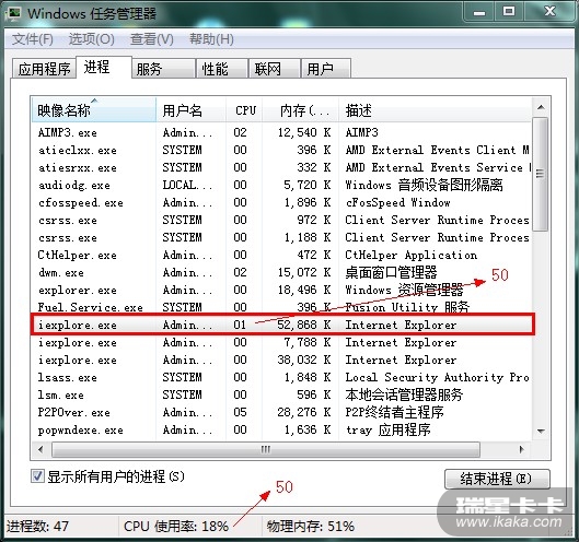 有时iexplore.exe的cpu使用率50%,有时末明的cpu使用率50%,谁用的都不知道。有时什么问题都没有。
