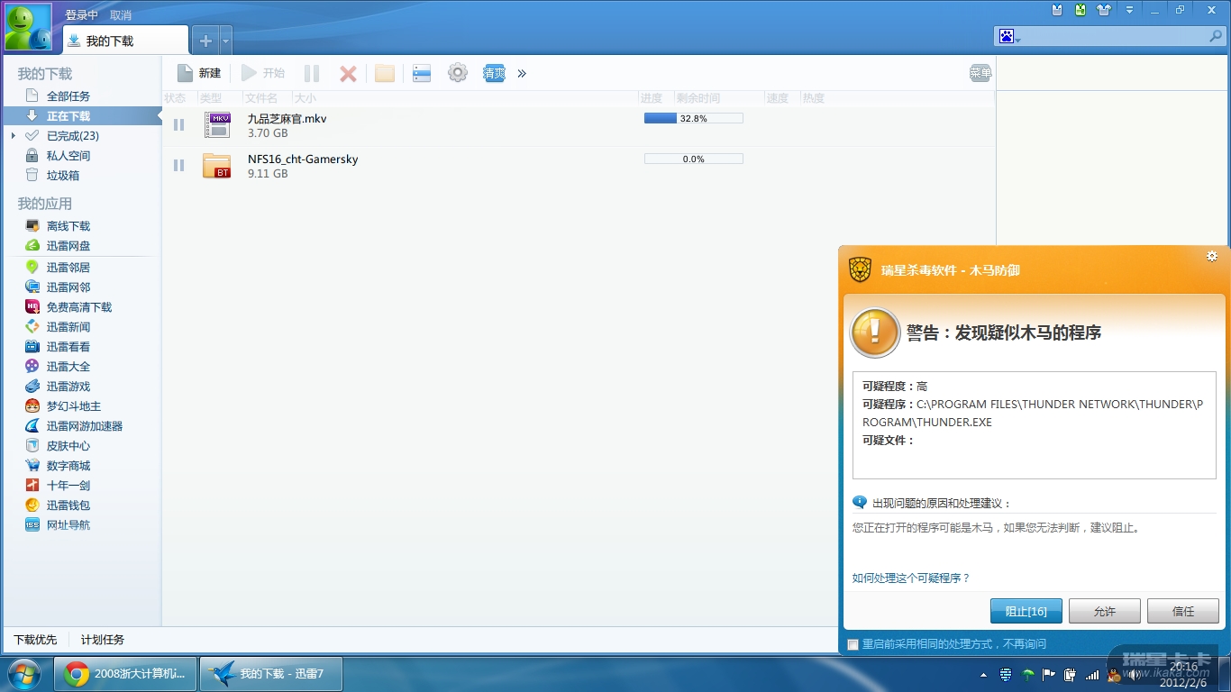 打开迅雷时木马防御弹出了提示,我点击了允许,关闭迅雷后重新打开,木马防御就不弹提示了。重启后,再次打开迅雷,木马防御也未再弹出提示。