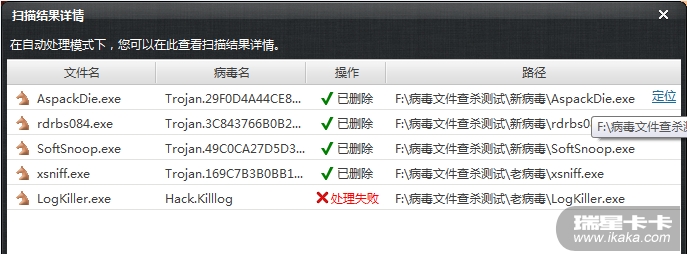 《瑞星杀毒软件2012 测试报告》(2-2).doc,请将图中处理失败的样本LogKiller.exe上传。