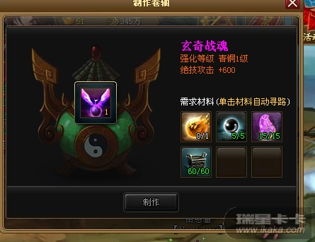 因为您的战魂在人物身上,并不在包裹内,您在包裹中点击材料制作,识别包裹内没有战魂,所以才会这样的。或者您把要制作的人物的战魂卸掉,放回到包裹中,然后再制作。