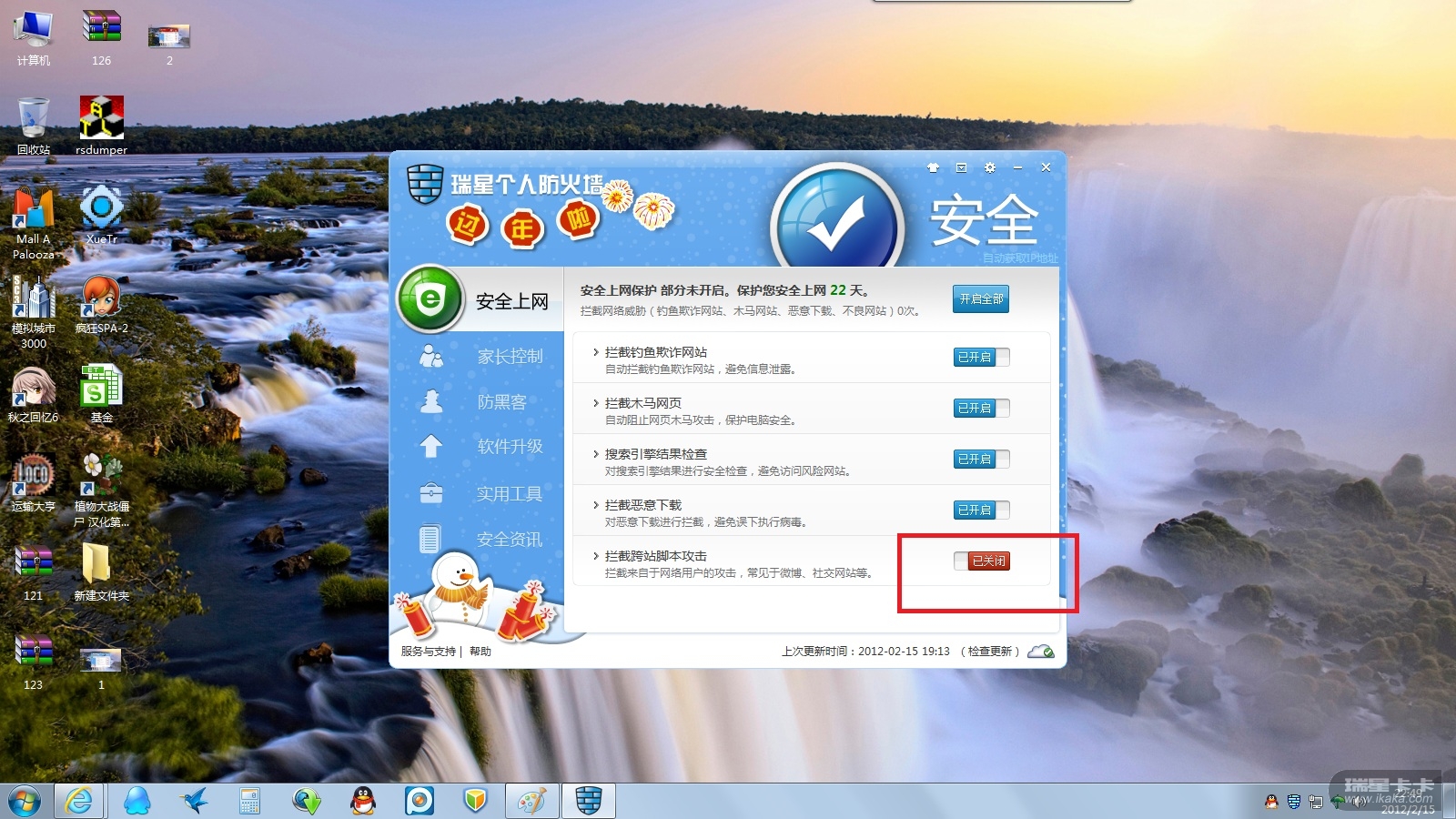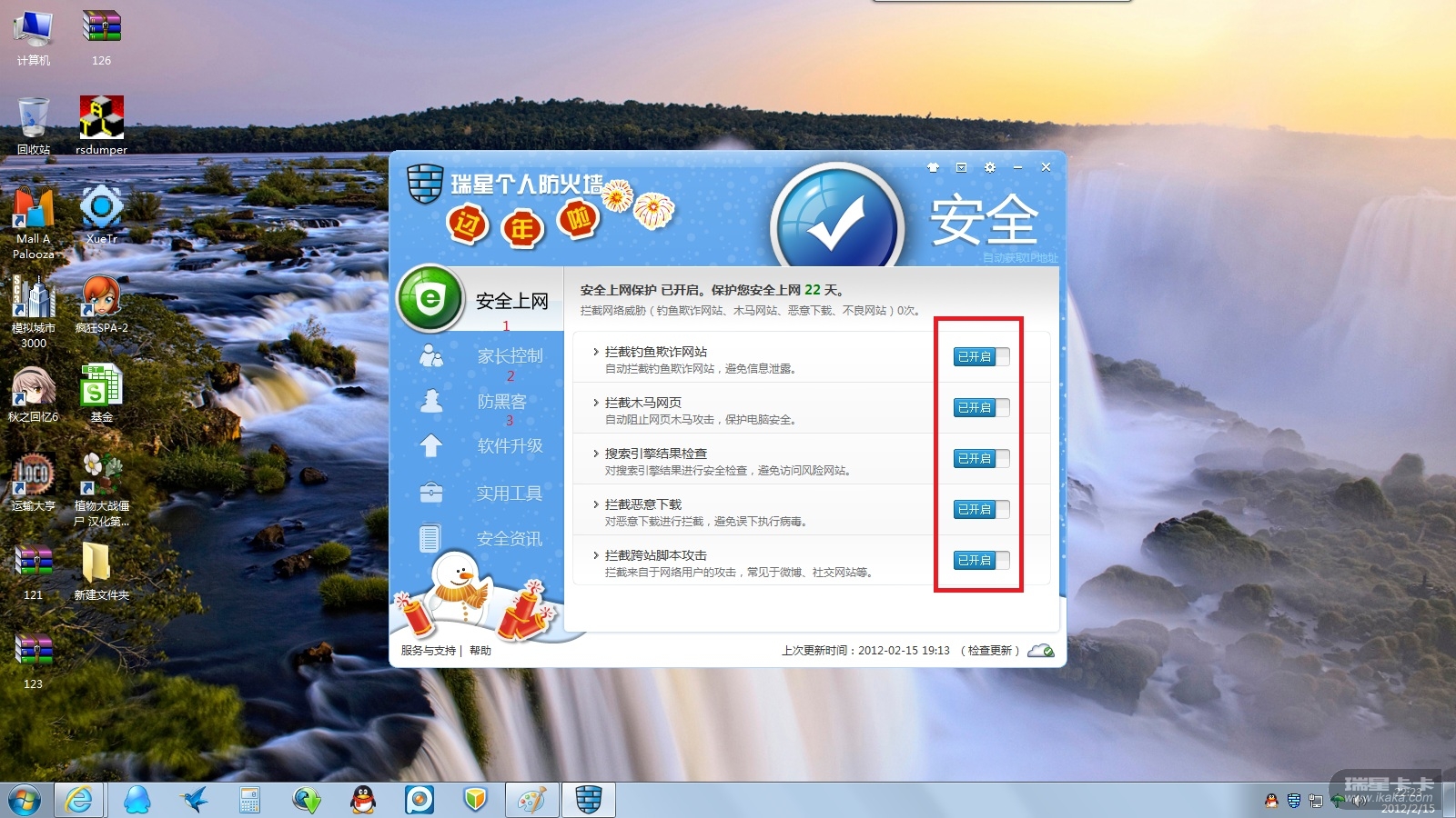 结果是监控1的拦截钓鱼欺诈网站(选择项以实际选项为准)、2和3的监控都随即开启,托盘出现