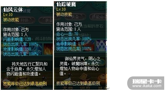 仙踪破魔:被动高级技能,当技能升至十重时,可为人物增加150命中值和70会心值,如下图