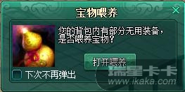 9、新增宝物喂养提示,背包中有多件比玩家身上装备属性差的装备时,系统将提示玩家将装备喂养宝物