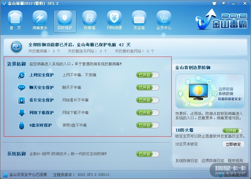 不管是否是噱头,入口点防御确实在实际应用中起到了前段防御应有的作用,尤其是下载保护尤为重要!瑞星2012版之前将主防作为