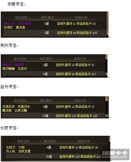该活动分为五个阶段(阶段数可配置增加)。每个拥有自己的开启条件和持续时间。玩家在指定时间内升级指定阶段内宝物到指定星级可领取奖励。