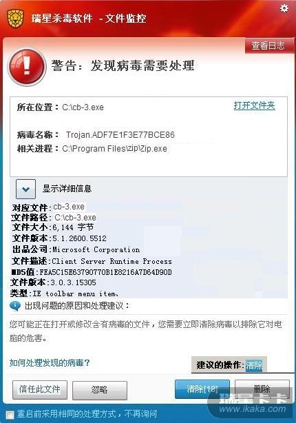 瑞星你的UI就不能再好点吗,看上去不协调啊,上个自己想的图(暂时只上个病毒报警图),用画图临时弄的粗糙了点