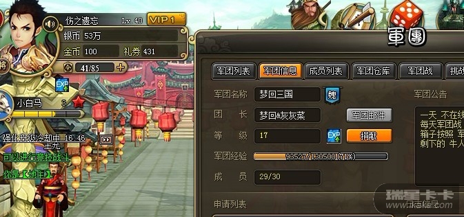 军团名:梦回三国