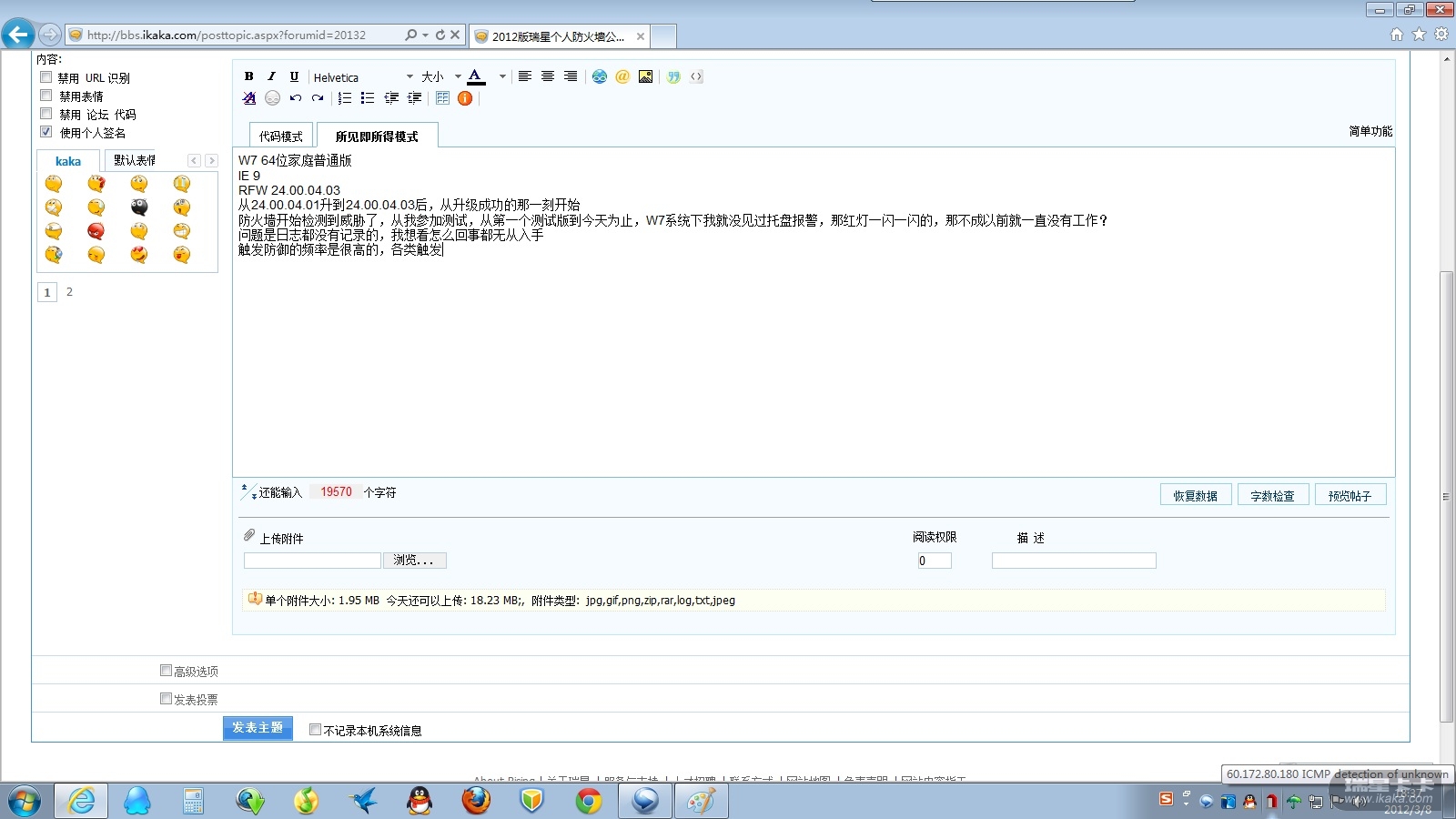 防火墙开始检测到威胁了,从我参加测试,从第一个测试版到今天为止,W7系统下我就没见过托盘报警,那红灯一闪一闪的,那不成以前就一直没有工作?