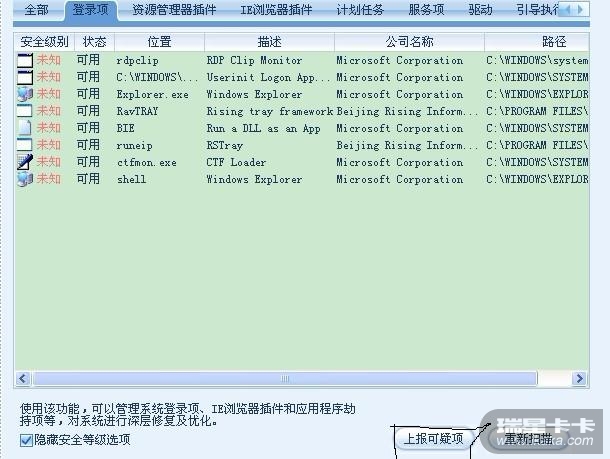 4.增加卡卡助手的把可疑文件的信息发布到卡卡文件诊所。( 自动扫描可疑,自动上报。用户的程序描述,或者是官方的描述可以很好的用在开机程序的介绍上。)