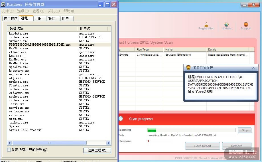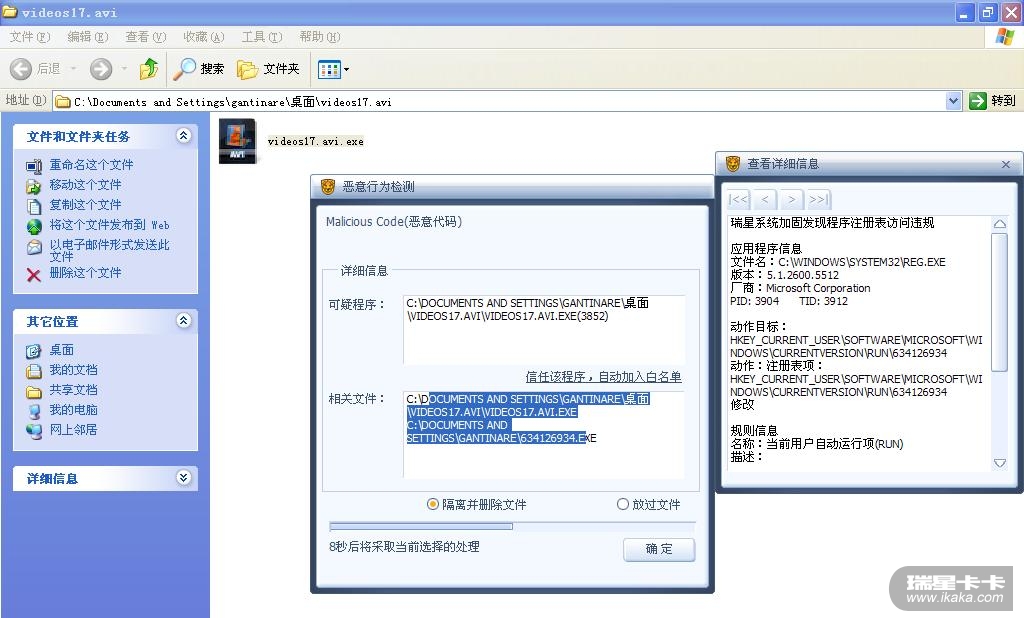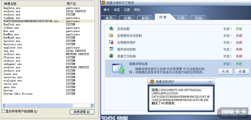 如果放行添加启动项,就只有在安全模式下删除位于C:\Documents and Settings\****的生成物