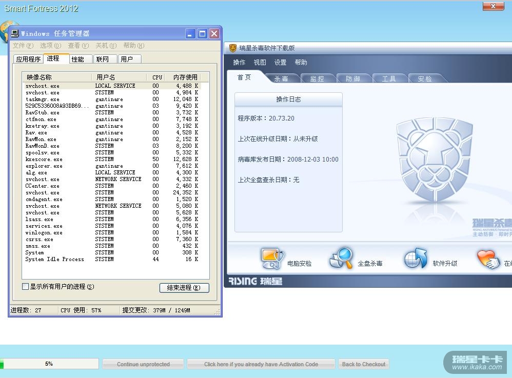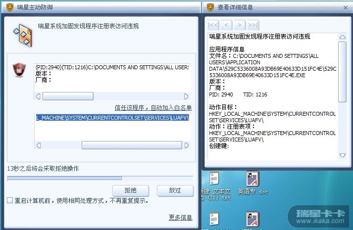 在瑞星2008下无法关闭瑞星杀软,触发自保