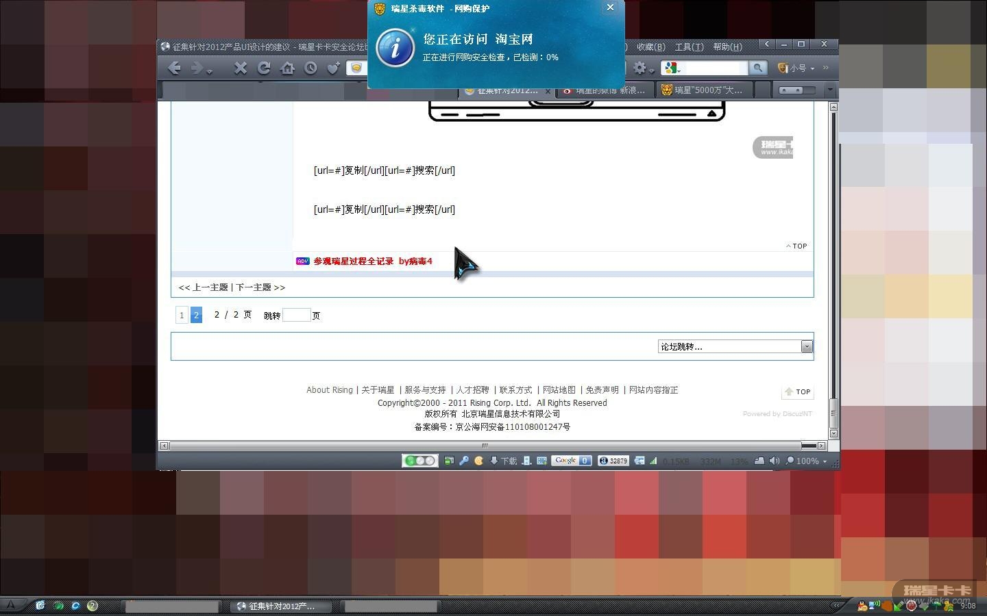 最后一点,去掉“安全资讯”模块,新增“云安全”模块和“瑞星账户”模块。安全资讯这功能“食之无味,弃之可惜”,去掉之后,至少感觉专业了不少,不知各位是否有同感?但安全资讯有时候也有用,比如这次公测,就可以通过这窗口来宣传,那么去掉之后,再想其他办法来弥补吧。新增的“云安全”模块,我提了挺多次了,希望让用户看到更加详实的云安全!而“瑞星账户模块”,就是要显示当前用户的账户信息,包括成长值、等级、特权介绍等等。如此培养用户之后,瑞星若再推出更高等级的收费服务,也容易顺理成章!望瑞星仔细考虑之。受时间所限,就写到这里了。