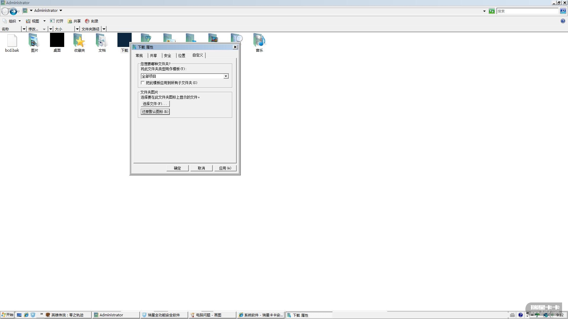 视图,中等图标与平铺下,桌面、下载的图标会如此显示,自定义还原默认图标也试过