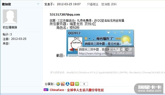 回复: 三区开服活动:礼券免费得,改QQ签名给龙将送祝福