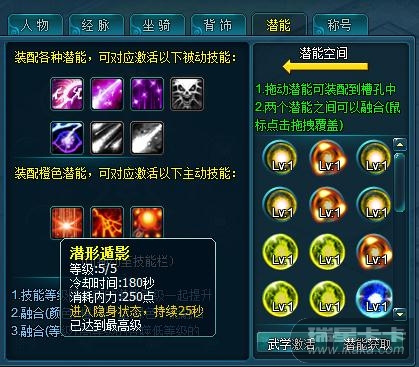 )玩家装配潜能可以获得属性加成、突破技能等级上限、获得神级技能,各种颜色潜能功能介绍:绿色潜能:卖出可获得6