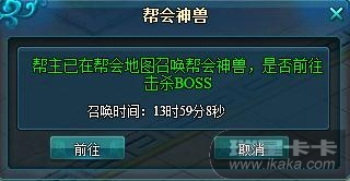 7、优化帮会神兽提示,帮主召唤帮会神兽时,在线帮众能收到系统提示,点击前往能快速进入帮会地图