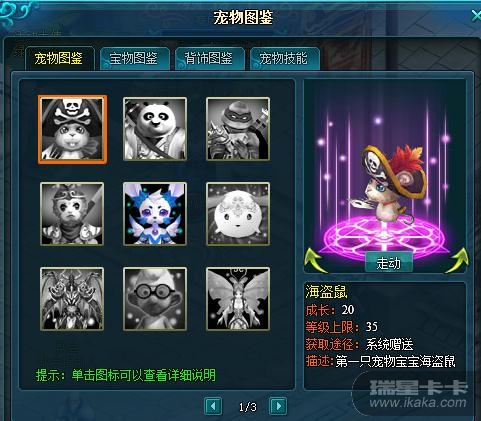 9、优化查看角色详情规则,玩家连续查看两名玩家的角色详情,将直接打开第二名玩家的信息10、优化图鉴系统,将宠物图鉴、宠物技能、宝物图鉴、背饰图鉴合并到一个界面中,方便玩家查阅