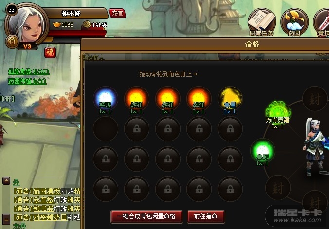【活动内容】:在活动期间内,获得命格“飞仙”或者“万寿无疆”(任意一种)并在神仙道论坛活动专贴进行回帖提交相应信息的前三