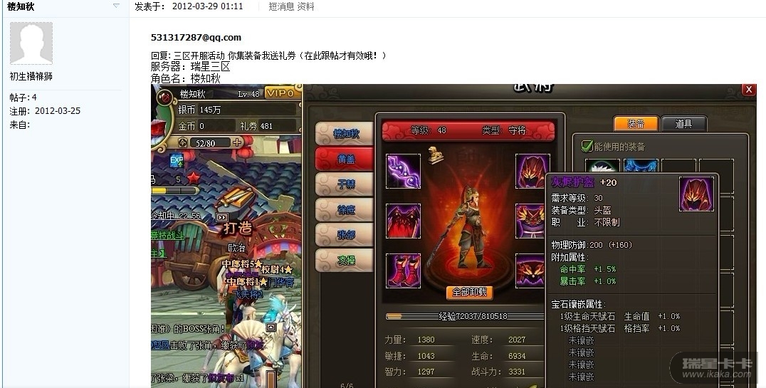 大区:瑞星龙将 双线3区角色名:楼知秋
