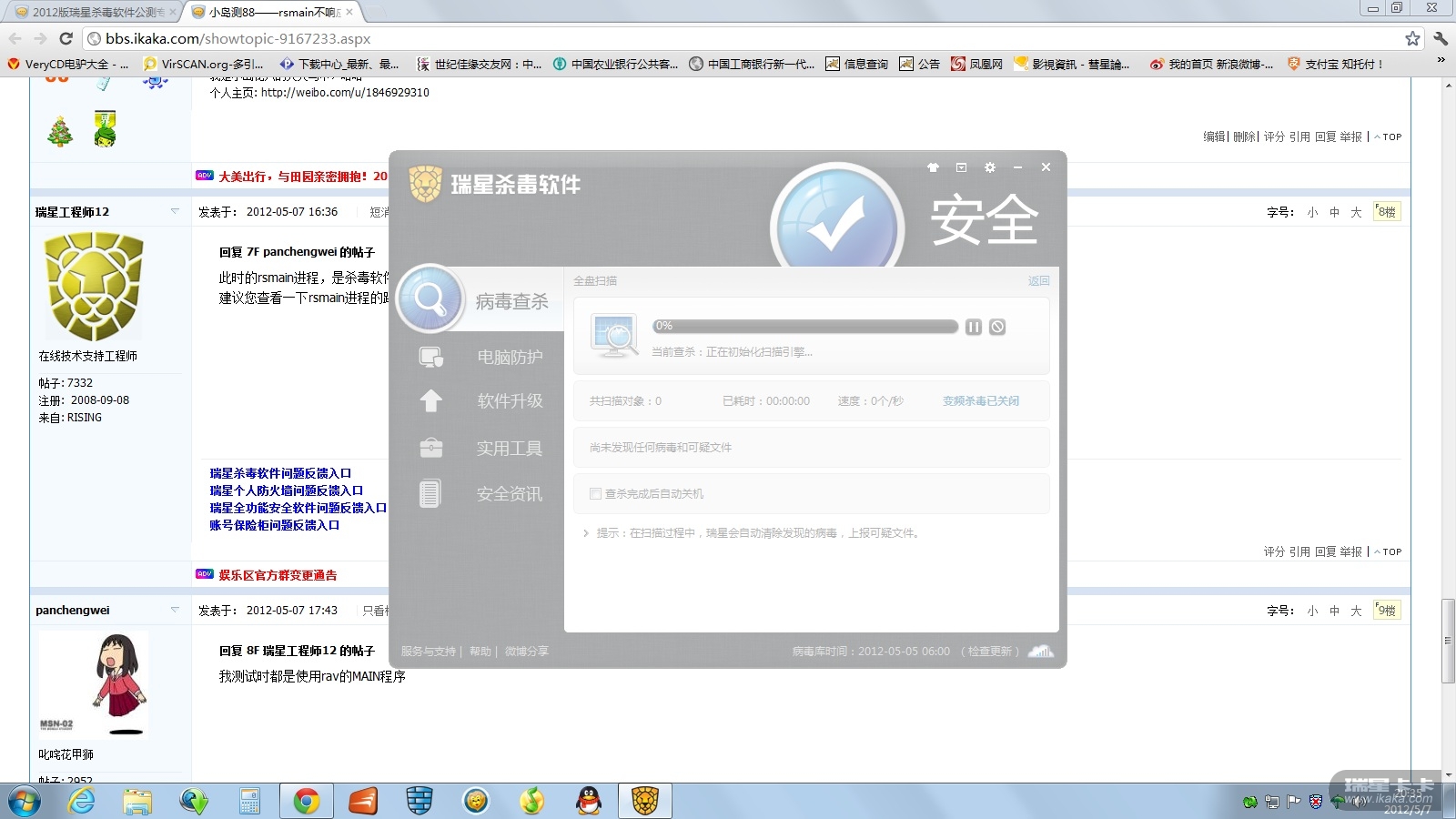 我又复测了一次,RFW的rsmain不存在此问题。RAV的rsmain刚巧被我鼠标胡乱点到了杀毒,然后我不断地胡乱点鼠标,就可以看见截图的状态