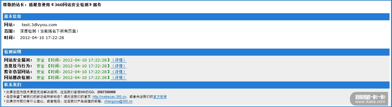 另问,瑞星联盟监控网站怎么检测了一晚还在检测中,是不是我有什么地方弄错了。