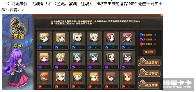)玩法:获取魂玉—双击给主角或者佣兵装备—猜拳获取龙魂—魂玉升级