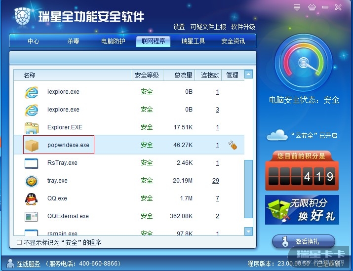 popwndexe.exe进程,是瑞星云查杀的相关组件,随着系统启动