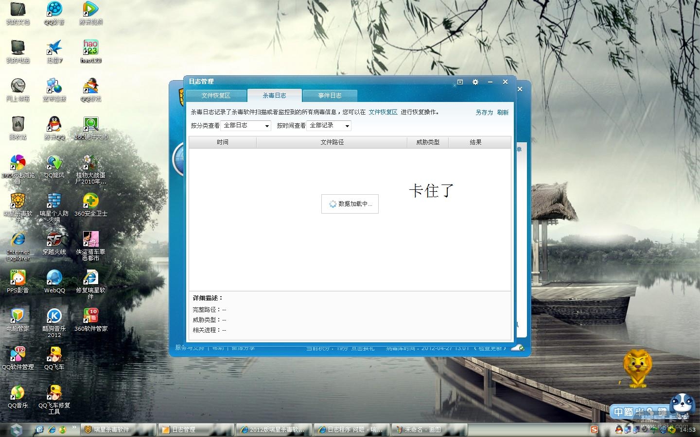 如图,一打开日志程序,日志程序就一直卡在下面这个画面,无法操作,无法关闭