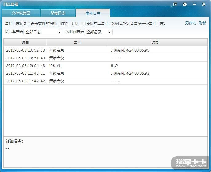 日志长时间加载问题已在全功能24.00.05.91版本解决,请大家升级到该版本或以上版本即可。另外加入了杀毒中的7项功能如系统修复、垃圾清理等。