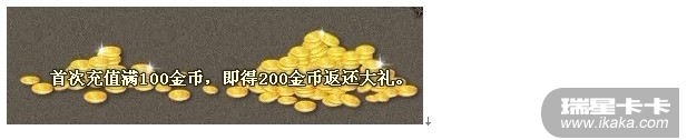 【活动详情】:新角色首次充值100金币,即立刻送你200金币!