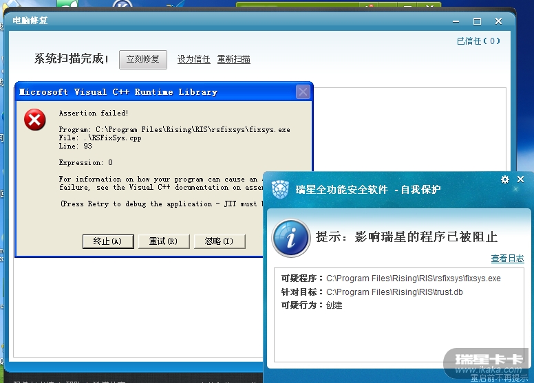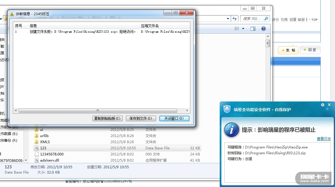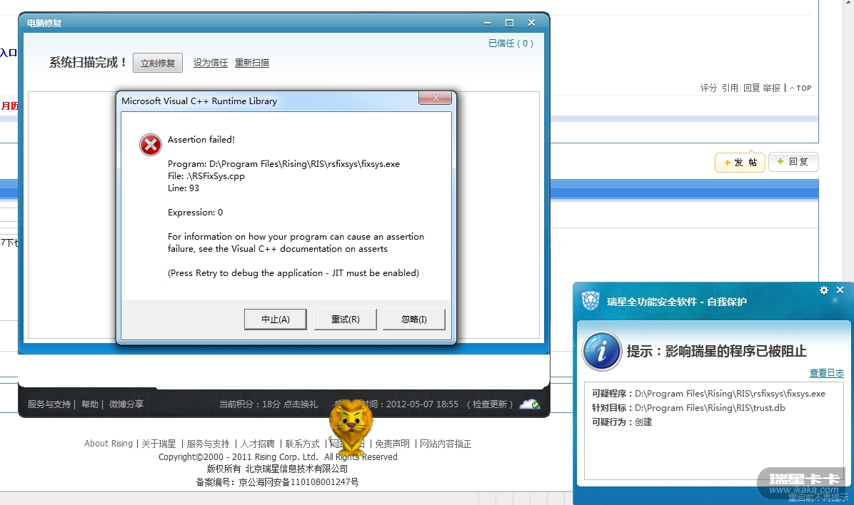 并查看瑞星全功能安全软件的安装目录下是否有.dmp格式文件?如果有也一起压缩上传至论坛。