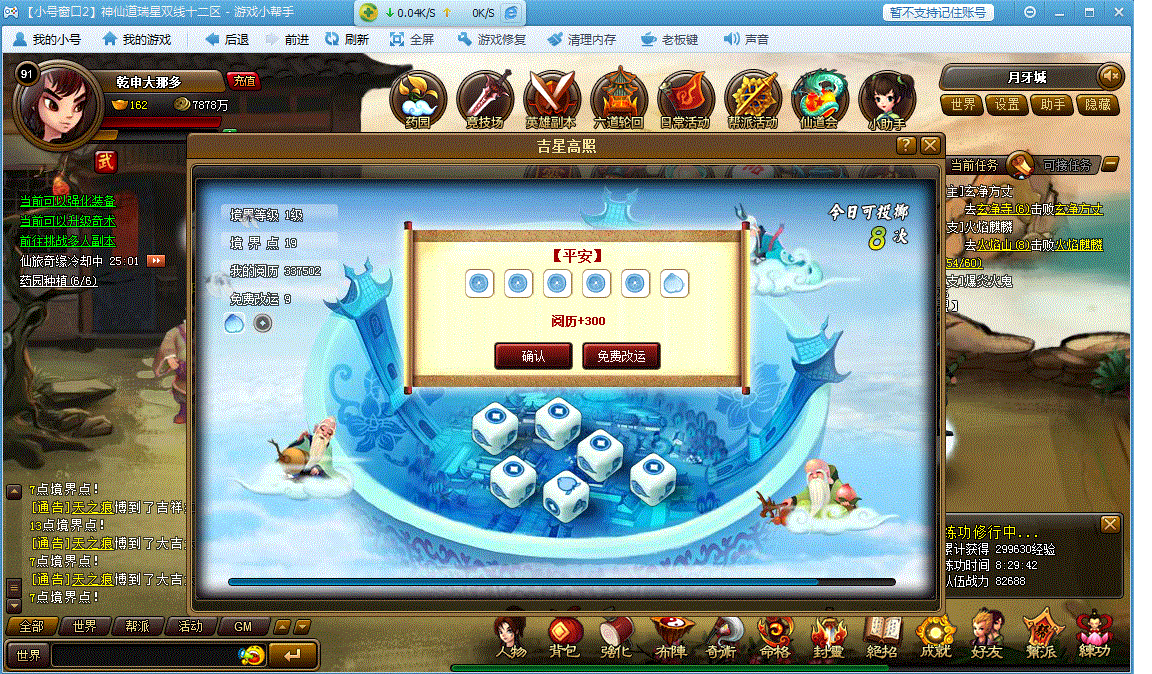 境界等级为1级的时候只有掷出4个桃子才会获得奖励,境界等级为2级的时候掷出4个桃子或者4个铜钱才会获得奖励!您的境界等级目前为1级,需要升级到2级时掷出4个铜钱才会获得奖励的!境界等级升级需要的是境界经验!