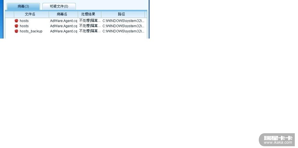 瑞星杀出来了几个病毒,处理的结果都是 不处理(隔离)