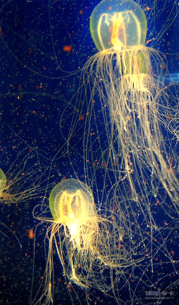 花叶水母在距离澳大利亚凯恩斯大约100海里(约合185公里)的珊瑚海海域,不少花叶水母浮游在碧蓝的海水中。水母在地球的海洋中无处不在(全世界的海洋中有超过两百种的水母,它们分布于全球各地的水域里)。它们能适应温暖或冰冷的海水,还能在浅海和深海中自由穿梭,生存能力很强。它们没有大脑,身体成分的 95%都是水分。这种无脊椎动物的寿命通常很短,平均只有数个月的生命,但水母这个物种却在地球上生存了5亿多年。摄影师:Melissa Fiene