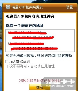 [求助] 大家帮帮忙 瑞星ARP包冲突提示