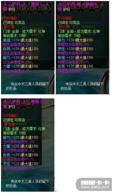 太乙护符:分天、地、人三种,全部属性均为固定属性,不存在变量,重置太乙护符属性将会随机获得其中一种太乙护符