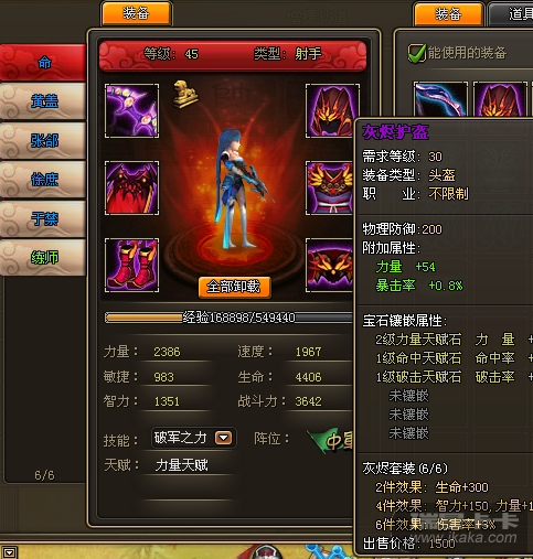 截图(包含主将名,套装属性截图)