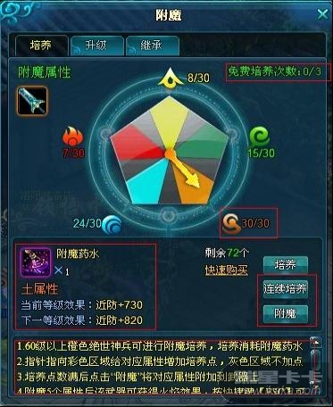 3、进行培养操作时,指针指向彩色区域时增加对应的属性培养值1点,灰色区域不加点。