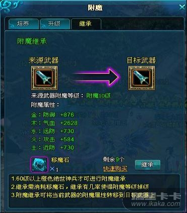 、将原有附魔属性和附魔等级转移到新武器上,需要消耗1个移魔石