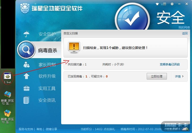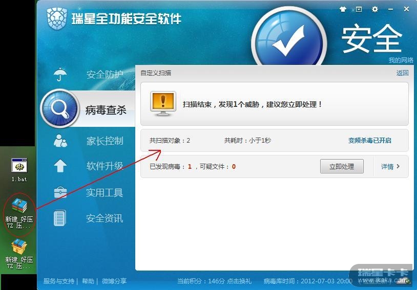 把这个压缩包制作成自解压文件,再扫描,发现瑞星不报病毒了!