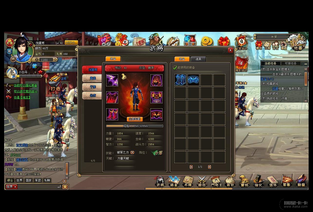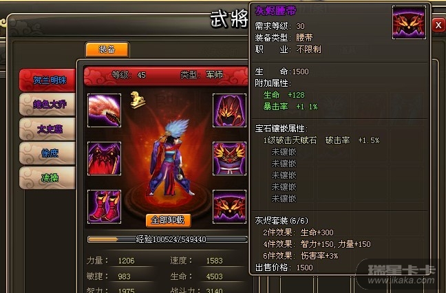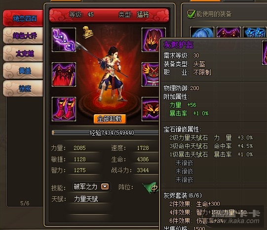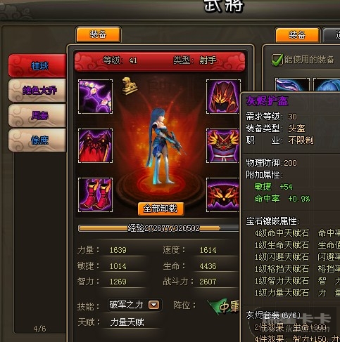 截图(包含主将名,套装属性截图)