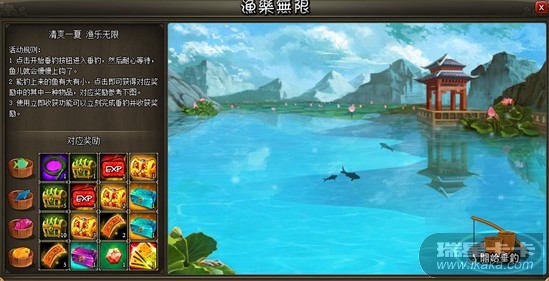 5. 点击收获上钩的鱼,就能获得奖励道具,不同鱼对应的奖励不同,可参照对应奖励表,每收获一条鱼就可获得对应奖励中的其中一种物品奖励。